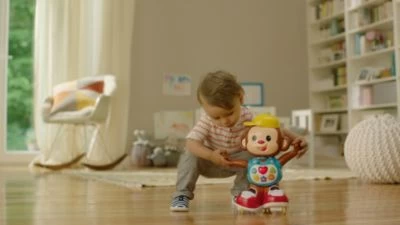 sagt es lustige Sätze und macht Geräusche. Zudem animiert es zum Hinterherkrabbeln und Nachlaufen.