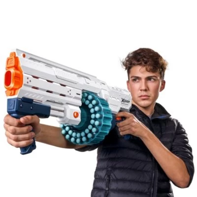 Die Festung mit 48 Darts!Dieses Monster fehlt in deinem Arsenal! Der große Blaster überzeugt mit seiner ebenfalls großen Trommel mit Platz für 40 Darts! Durch den löse Mechanismus lässt sich die Trommel ganz einfach runter schieben und entspannt Dart für Dart laden. Mit 40 Darts kannst du locker mehreren Gegnern gleichzeitig stand halten.Der Griff ist gleichzeitig Pump NachlademechanismusUm vollste Kontrolle beim schießen zu haben fungiert der Griff gleichzeitig als Nachlademechanismus. Hält man währendessen den Abzug gedrückt, frisst dein Gegner sogar Darts ohne Pause. Das ist der Slam Fire Modus!